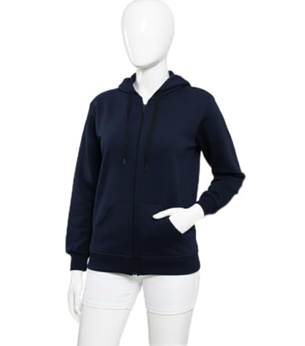 Generic - Navy Blue Zip-Up Hoodie, Long Sleeve, Kangaroo Pocket, Drawstring Hood