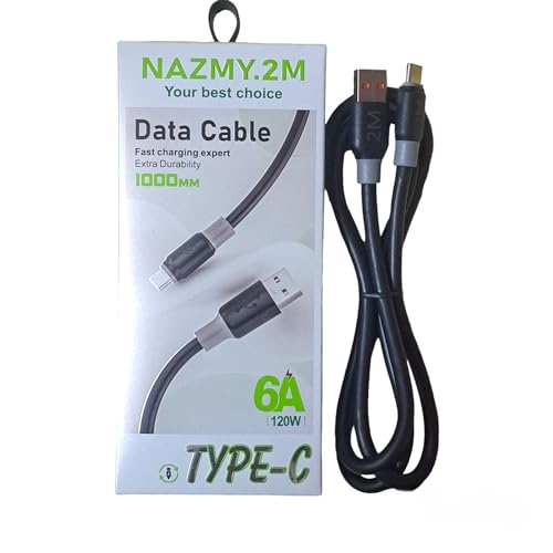 Generic - Nazamy Durable USB Type-C Cable (Category 6-A) with Super Fast Charging for Oppo Samsung, Xiaomi, Huawei or Other Type-C Enabled Devices (1 M, Black)
