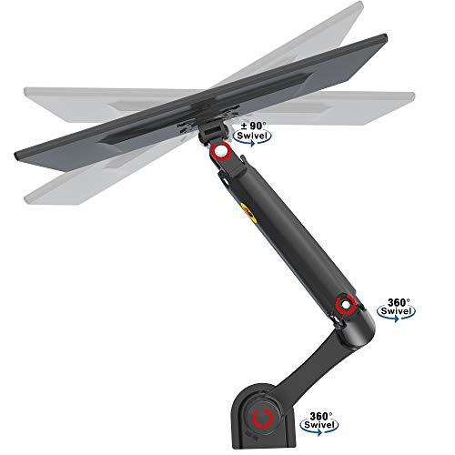 - Customize your working condition, Built-in with ultra-precision gas-strut, Allows +85° to -30° screen tilt adjustment, 360° rotation for landscape or portrait mode; Upright lift 10.2" (260mm) and +90° to -90° degrees swivel, Hold your monitors with an unparalleled range of motion. The max height from the desk to the center of the VESA is 21.6”(550mm)