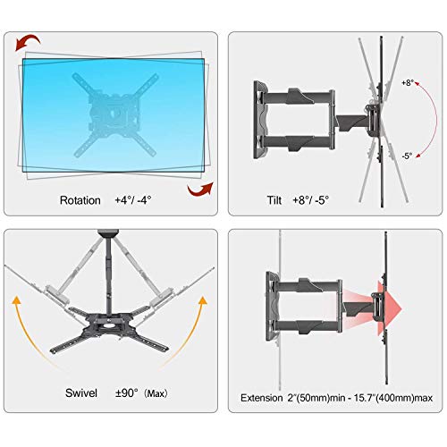 - Constructed with superb craftsmanship, safety locking structure, convenient tilt, and easy level adjustment making them simple to use. You can extend your TV 15.7 inch(400mm) from wall, and folded min 2”(50mm) to the wall, Save valuable space for your room.