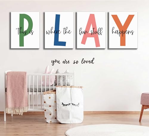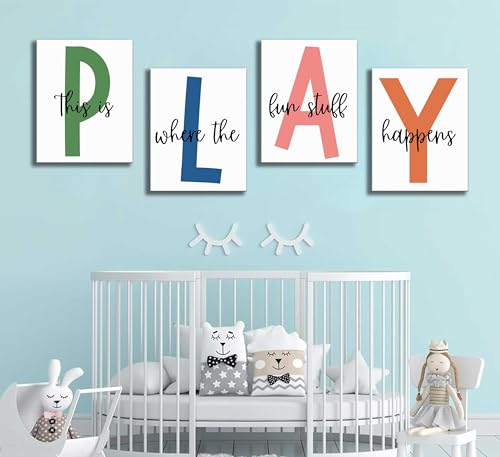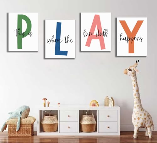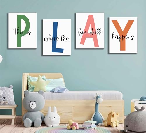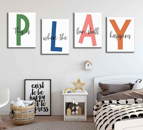NBYARTQ - NBYARTQ 4Pcs Kids Playroom Wall Art Childrens Playroom Canvas Posters Prints Boy Kids Room Let's Play Wall Decor Pictures Toddler Nursery Bedroom Artwork Decoration (Playroom, 8x10inx4pcs Canvas)