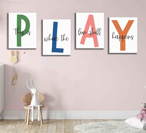 - Beautiful Gift This PALY This Is Where The Fun Stuff Kids Playroom Wall Art Poster decorative painting is a decorative painting worthy of collection. It is sure to captivate wherever it hangs. You can give it to your family and friends on any special occasion, they will love it