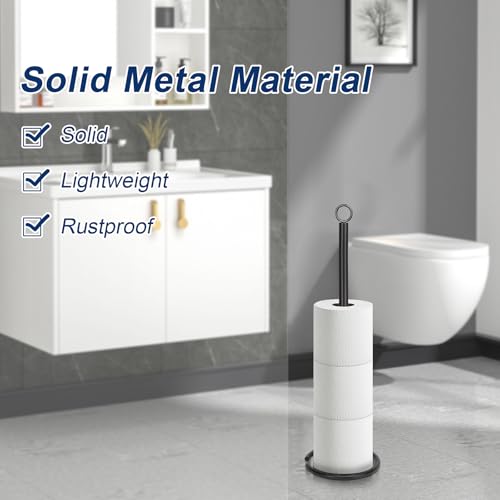 - 【HEAVY WEIGHTED DESIGN】The round base of freestanding toilet roll holder is not easy to lean. Solid iron toilet paper holder with heavy weighted base is more stable. It can easily store the paper rolls without tipping it over
