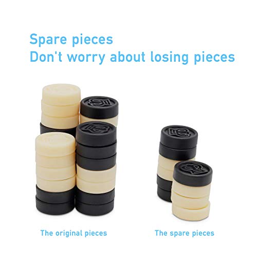 - [Spare pieces] Because of the backgammon/checkers piece is a little bit small, we prepare 10 more spare pieces (5 for each color) in case the pieces get lost.