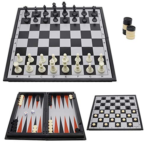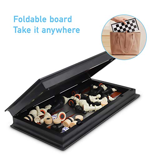 NEARTOP - 13" Magnetic Chess Checkers Backgammon 3 in 1 Set for Adults, with Spare Pieces and Folded Board,Perfect Brain Games.