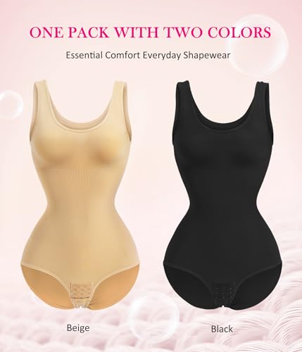 Nebility - Nebility Womens' Waist Trainer Seamless Round Neck Tummy Control Shapewear Bodysuit