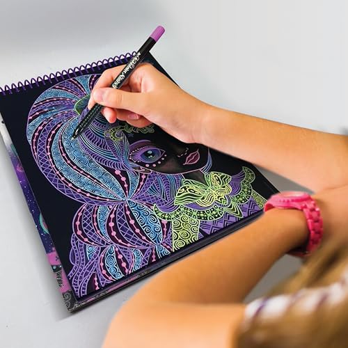 - NEON-INK GEL PENS: This drawing sketchbook for kids comes with neon-ink gel pens that your kids will love! The result of the neon pens on black pages is very bright and much different than any other sketchbook out there