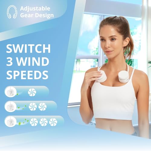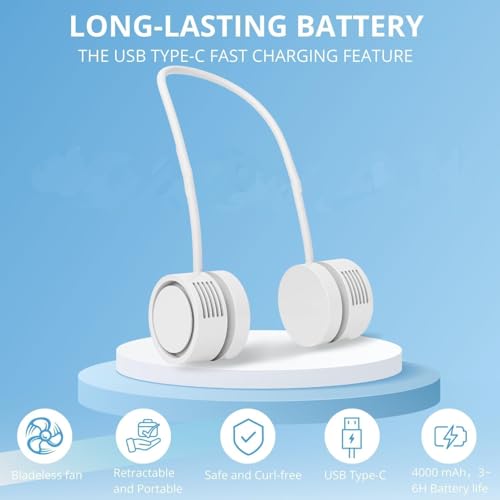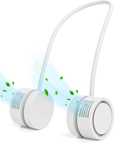 Lakko - مروحة رقبة محمولة بدون شفرات، قابلة للطي واعادة الشحن 1600mAh، 3 سرعات وقوة تبريد معززة، مروحة شخصية USB بدون استخدام اليدين للرجال والنساء في الهواء الطلق والسفر، هدية مثالية (ابيض)