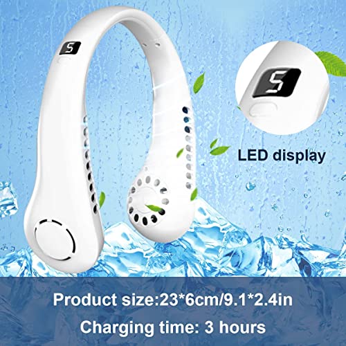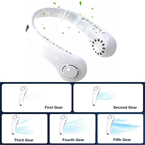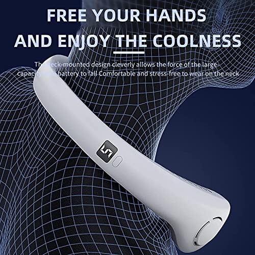 - ◎【5 Speeds Comfortable Portable Hanging Neck Fan】Our leafless Wearable neck fan offer 5 different speeds, and portable neck fan with LED digital display wind speed, you can set up to a comfortable speed to better regulate the temperature. neck fans for men rechargeable. The USB Rechargeable Neck Fan is made of high quality soft silican gel, it is soft to fit your skin, it can effectively prevent sliding, it is flexible and not easy to break. The portable travel fan also makes a great Father's Day gifts.