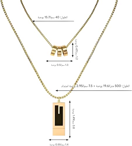 Generic - Necklace - a unique double rectangle pendant on a 50cm Plus extension chain, with a shiny black enamel accent for a contemporary touch to your jewelry collection