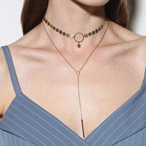 Other - Necklace Bohemia Double Layer Star Sequins - Gold Plated