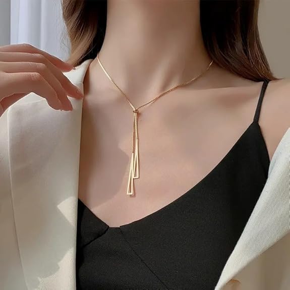 Generic - Necklace Classic Double Layered Ethereal Triangle Drop Asymmetrical Tassel Stainless Steel - Plated 18K Gold
