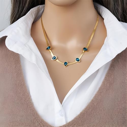 Generic - Necklace-elegant 316L stainless steel water drop pendant decorated with shiny zircon crystal, vintage choke design with Chain jewelry gift for women