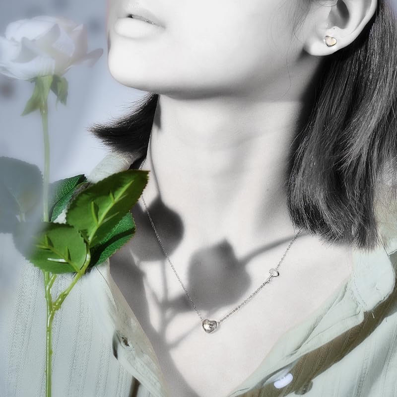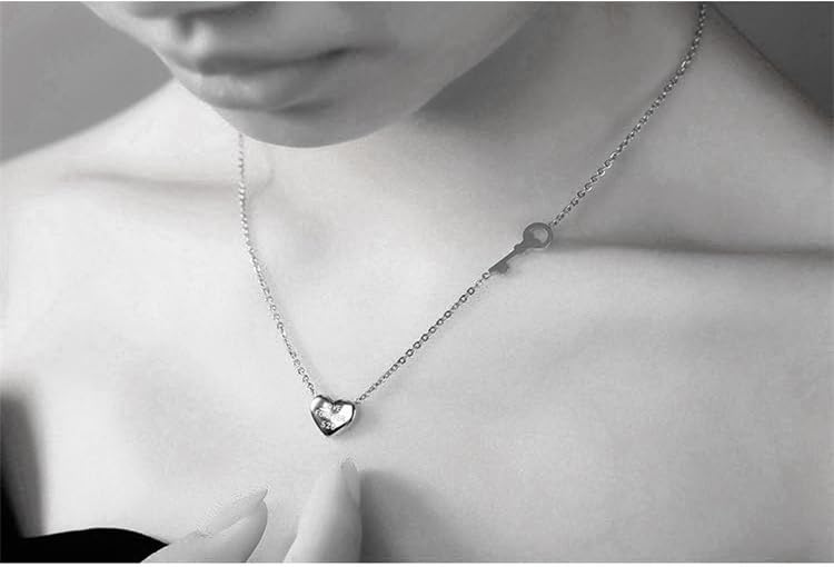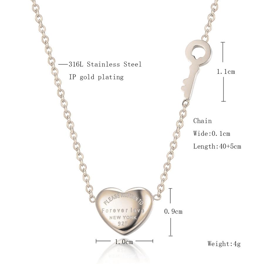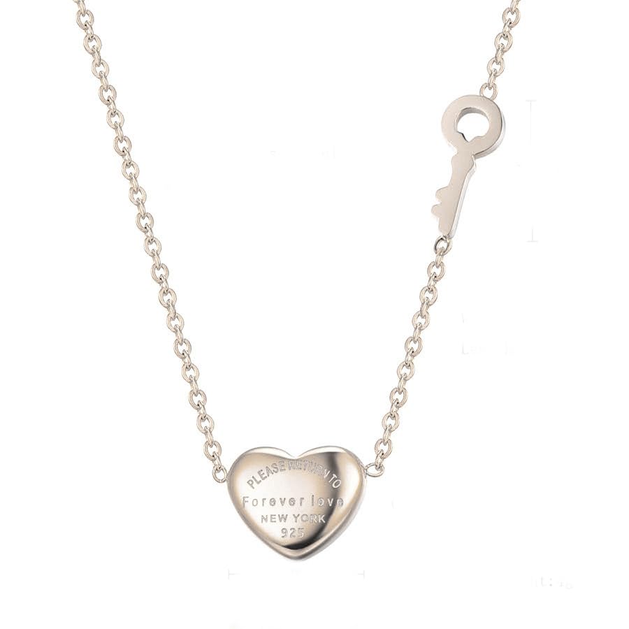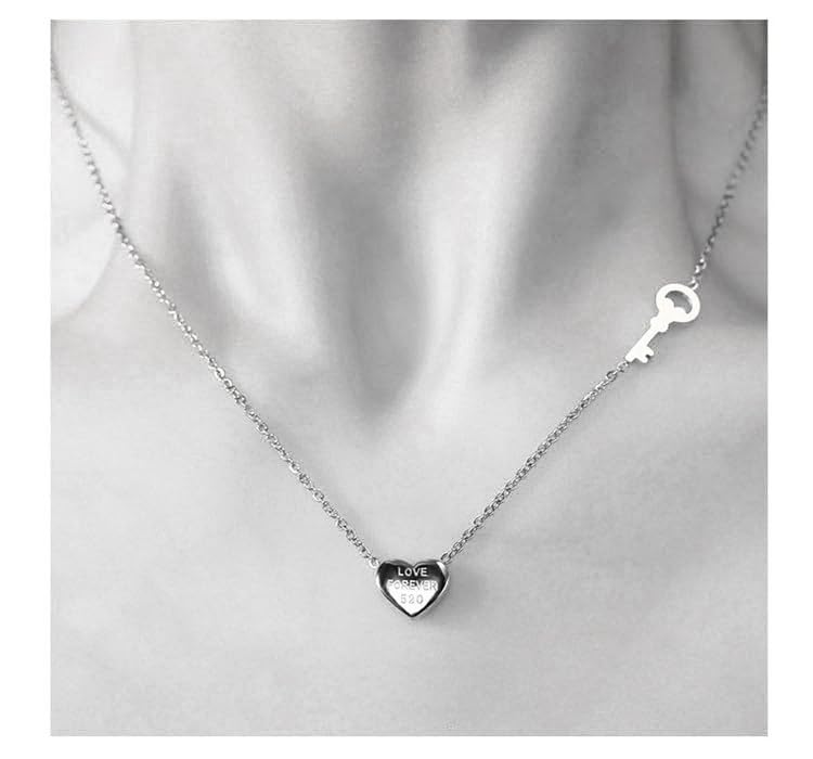 Generic - قلادة مفتاح الحب القلب للأبد للنساء لعيد - ستانلس ستيل مطلي بالذهب الابيض