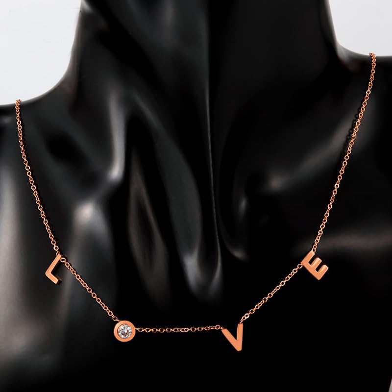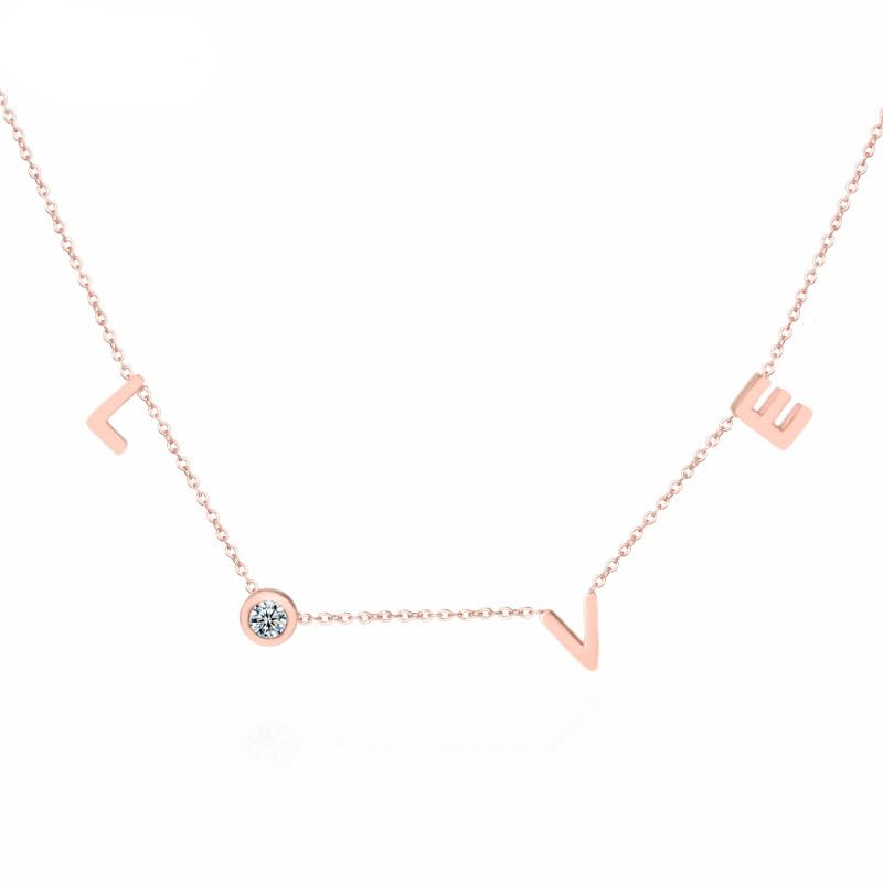Generic - Necklace Letter Love For Women Teen Girls - Stainless Steel Plated Gold Rose