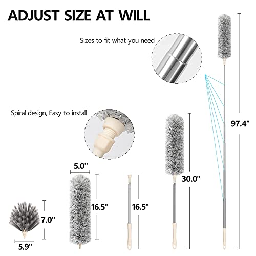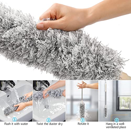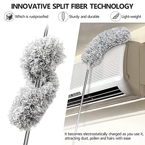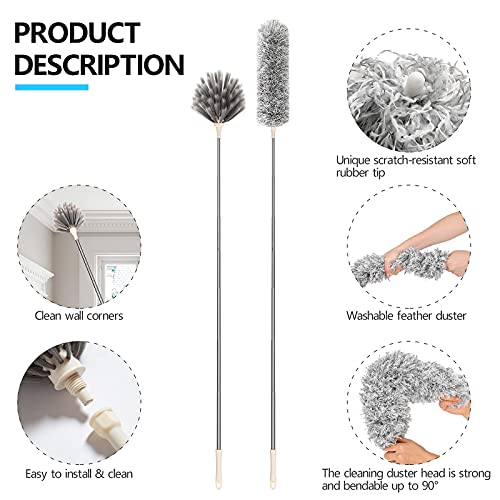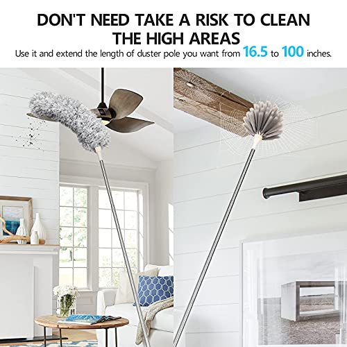 Necomi - منفضة ريش من نيكومي، منفضة مع عمود تمديد طويل للغاية، رؤوس بديلة مزدوجة من المايكروفايبر وشبكة العنكبوت المقببة قابلة للتمدد، مقاومة للخدش لتنظيف مروحة السقف العالية والسيارات