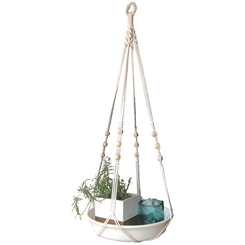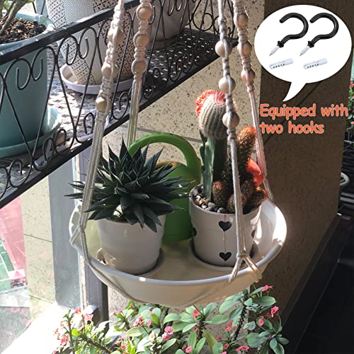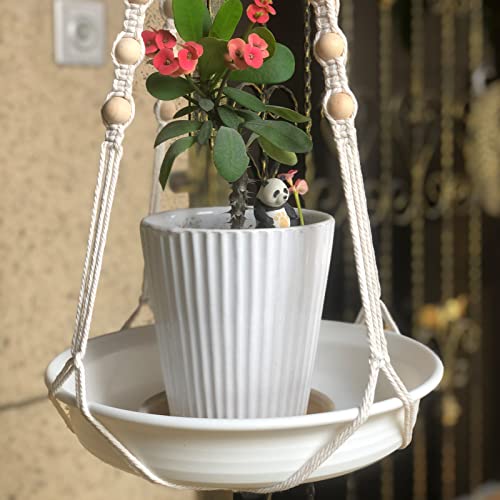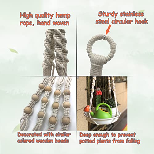 - 【نمط متعدد الاستخدامات】رف مكرامية عائم جميل مصنوع من حبال قطنية ملتوية، شماعة نباتات بحبل بيج مع صينية يمكن مطابقتها مع أي نمط ديكور.