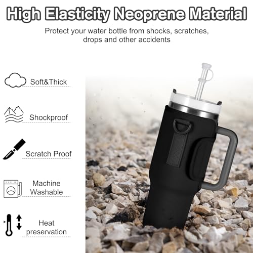 NEECZS - Water Bottle Carrier Bag for Stanley 40 oz Tumbler with Handle,Neoprene Water Bottle Holder Pouch with Strap&Spill Stopper for Stanley Cup Accessories,Bottle Sling for Walking Hiking Camping