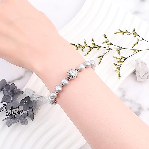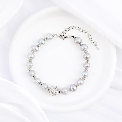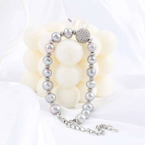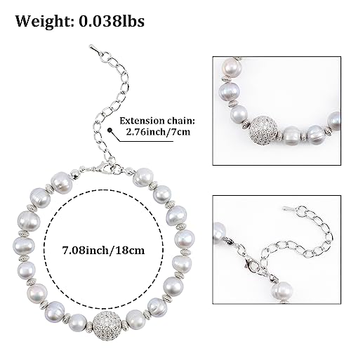 NEKOL - NEKOL Pink Heart Natural Gemstone Bracelets for Women Girls, Evil Eye Pearl Baroque Pearl Bead Bracelet Jewelry Valentines Day Wedding Prom Pageant Party Festival Birthday Gift Bracelet, 9.8, Gemstone