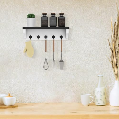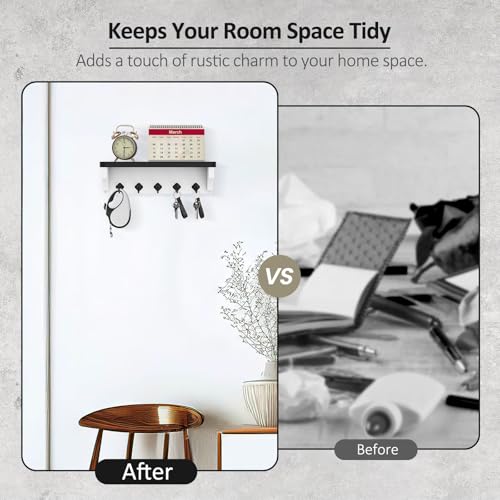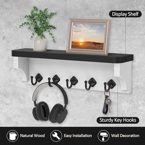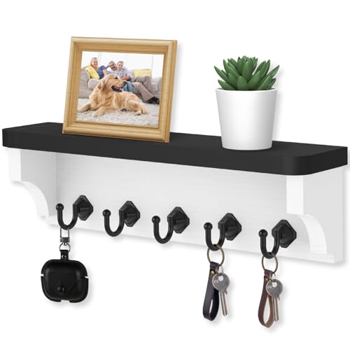 - Adds a Decorative Piece to Your Wall. There are 5 hooks to hold the various keys that you use around the house, it also has a shelf to hold your small essentials. This makes your home space more organized, accessible and decorative.