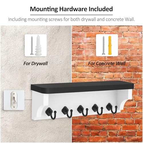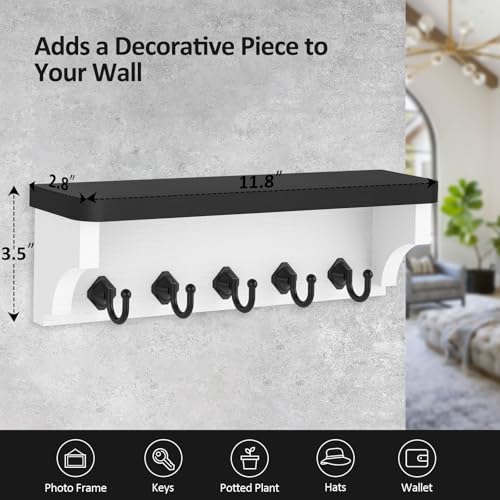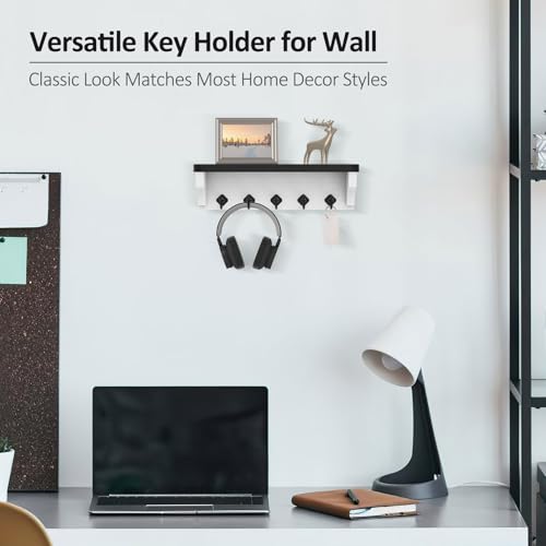 Nekon - Nekon Key Holder for Wall, 11.8" W x 3.5" H x 2.8" D Decorative Key Organizer with Floating Shelf, Wall Mount Key Rack with 5 Hooks (Black)