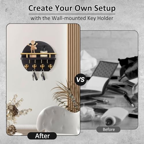 - [DECORATIVE ACCENT] Elevate your wall decor with this key holder – a functional home decor. Multiple hooks ensure organization for keys and mails, while its stylish presence serves as a decorative accent, adding a touch of elegance to your space.