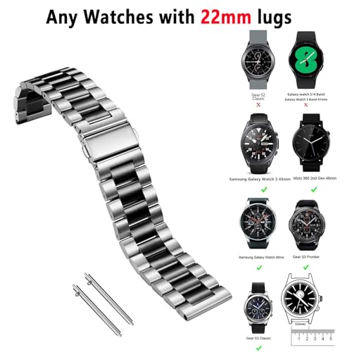 Nelumbo - Nelumbo Quick Release Metal Chain Watch Bands,22MM Solid Stainless Steel Business Bracelet Strap for Samsung Gear S3/Galaxy Watch 46mm(2019)/Galaxy Watch 3 45mm