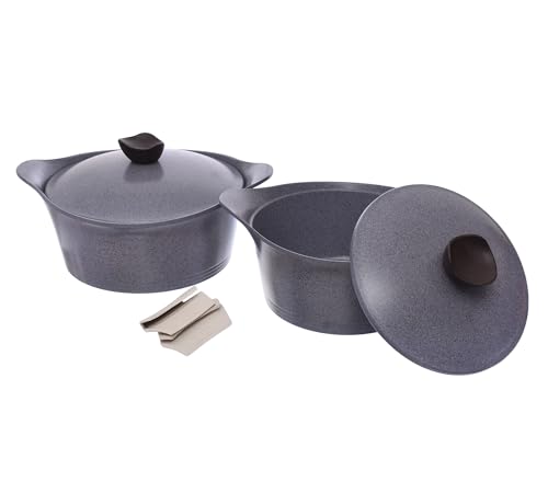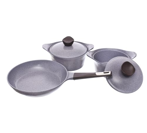 - LONG LASTING NONSTICK: Think healthier foods, easy food release, and an effortless cleanup for years to come with the Granite nonstick pots and pans set- Each piece of cookware is generously coated 3x with nonstick coating and reinforced deliver up to 10x longer lasting nonstick performance.