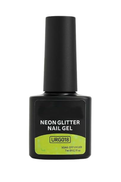- لون نيون ليموني جريء: طلاء جل ليموني فلوري مشرق مع قطع لمعان بأحجام متعددة يعطي إطلالة أظافر ممتعة وجذابة.