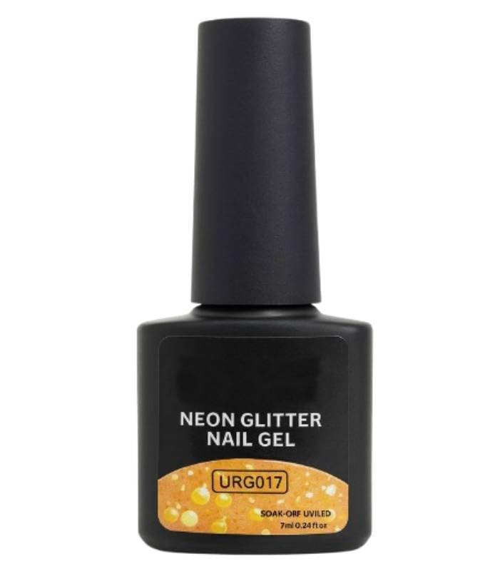 SNS SECRET NAILS SYSTEM - Neon Orange Glitter Gel Nail Polish 7ml – Vibrant Fluorescent Orange Sparkle UV/LED Soak Off Gel, Shiny Multi-Glitter Polish for Creative Nail Art, Long-Lasting Glossy Manicure (Shade URG017)
