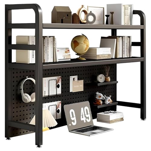 Nerxerx - 2 Layer Desktop Bookshelf for Computer Multipurpose Metal Desktop Hutch Shelf Wrought Iron Desktop Bookcase for Office Supplies Organizer, Home Decor (Black)