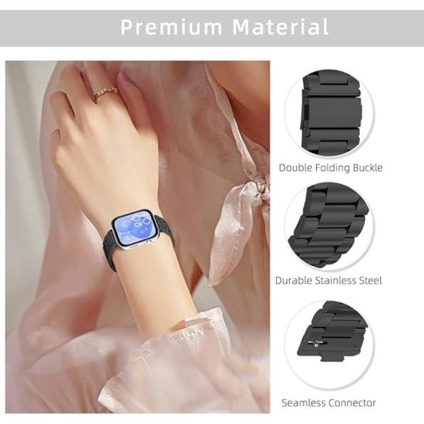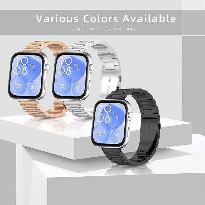 NESLIN - NESLIN Band Compatible with Huawei Watch Fit 3 2024 Strap, Adjustable Stainless Steel Metal Watch Band Classic Business Style Strap for Huawei Watch Fit 3 2024 Replacement Band Women Men