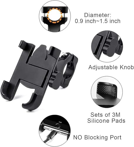Generic - Nesmah Store Bike Phone Holder Adjustable Rotation Anti-Shock Handlebar Phone Holder for Motorcycles, Scooters, Bikes (Jadon - USB Charger-Black)
