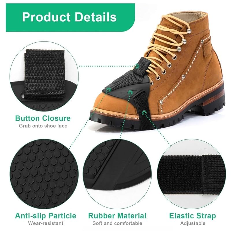 - PROTECT SHOES FROM TRACTION - Prevents friction marks, stains and damage caused by change of motorcycle gears, keeping your shoes looking new and maintain their life.
