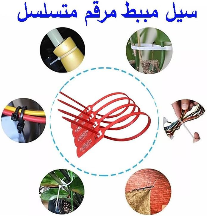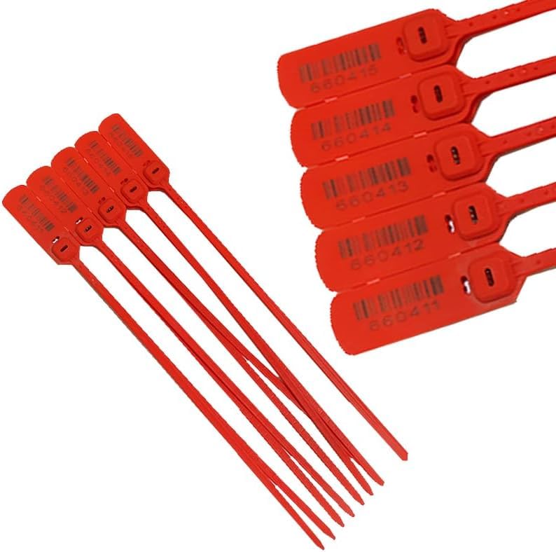 Generic - Nesmah Store Self Locking Cable Ties,Seal Safety Stoppers, Numbered and Sequential Ties,Securing Containers and Belongings (Red, Length 40cm, 5 Pieces)