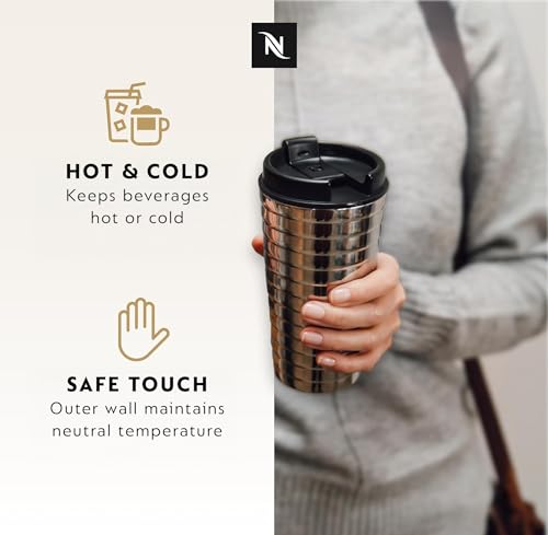 Nespresso - Nespresso Touch Thermal Travel Mug, 345ml, Stainless Steel, Hot & Cold Drinks, Leak-Proof