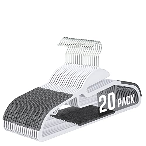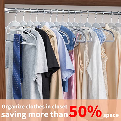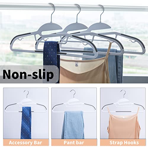 NesTidy - NesTidy Plastic Hangers Non Slip 20 Pack, 16.3" U-Shape Crewneck Shirt Hangers with 360° Swivel Hook, Space Saving Suit Hangers with Camisole Hooks & Tie Bar for Skirt, Pant and Bra, Light Grey