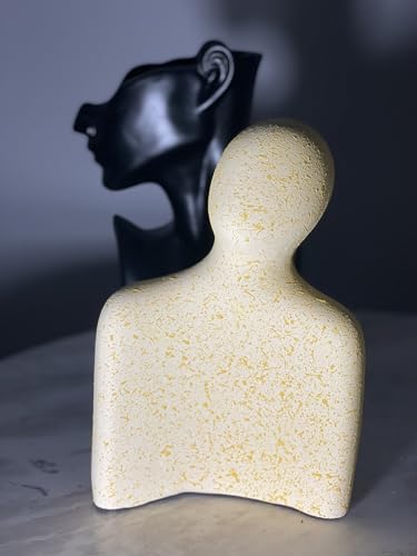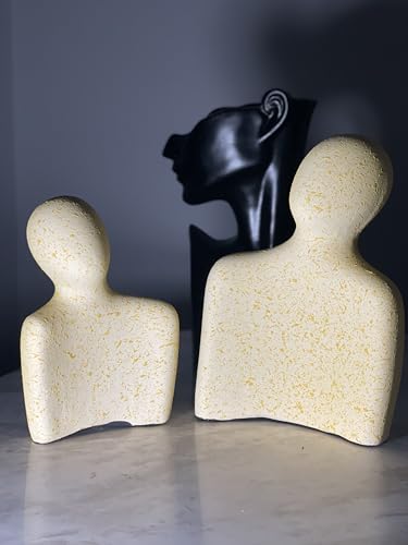 Generic - طقم مجسم متداخل، تمثال ديكور فني عصري بتصميم انسيابي مينيماليست، قطعتين متداخلتين بلون كريمي مع تفاصيل منقطة (اصفر)
