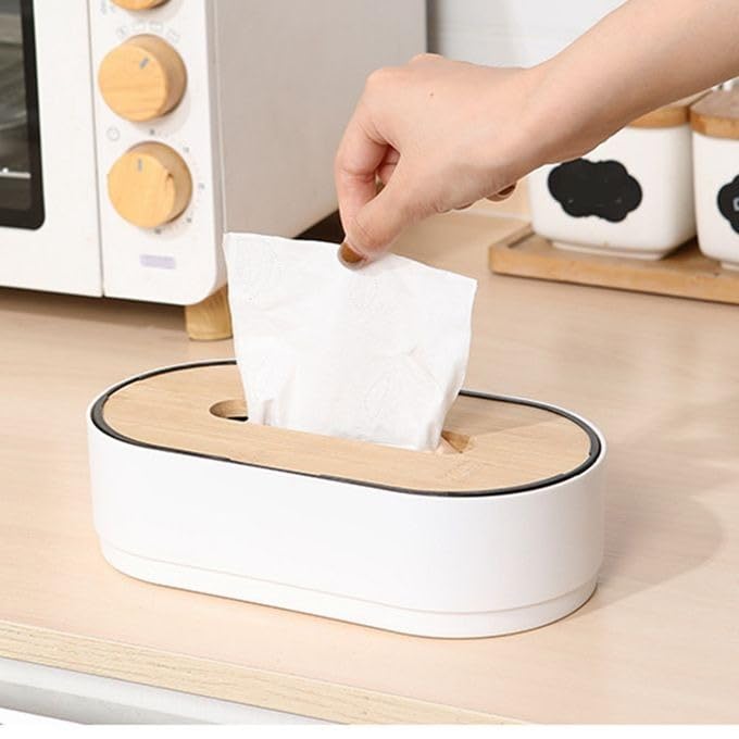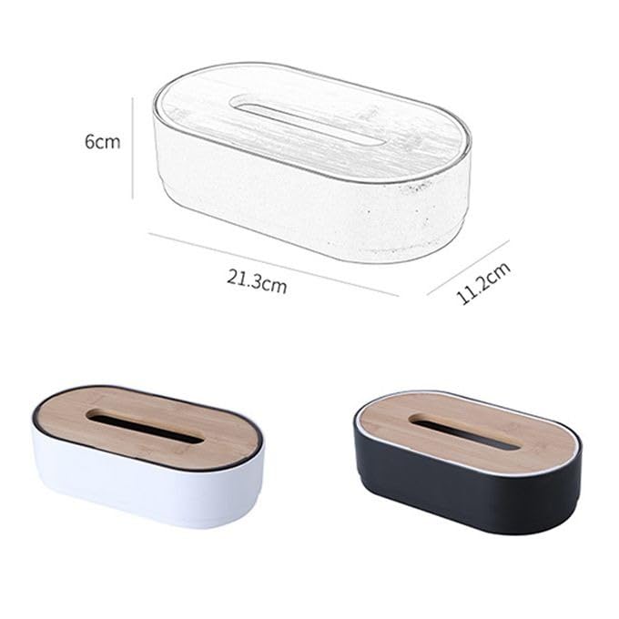 Generic - علبة مناديل بيضاوية بلاستيك متداخلة بغطاء خشب - تصميم راقٍ وعصري لتزيين أي مكان! - من جينيريك