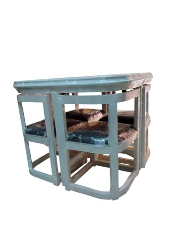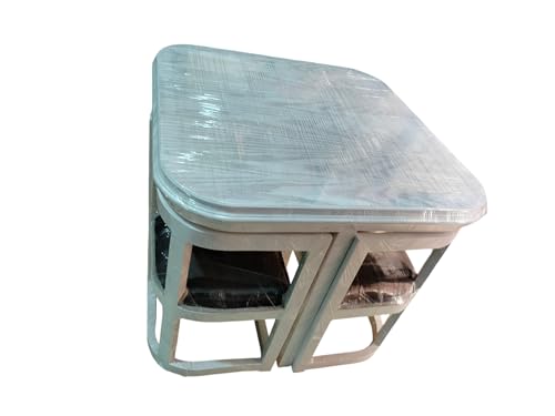Generic - طقم طاولة متداخلة و4 كرسي خشبي، ابيض فاتح، كراسي مبطنة، قطيفة رمادى غامقةللمطبخ أو غرفة الطعام
