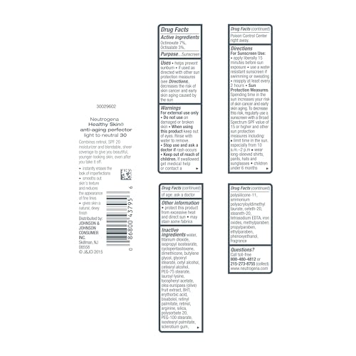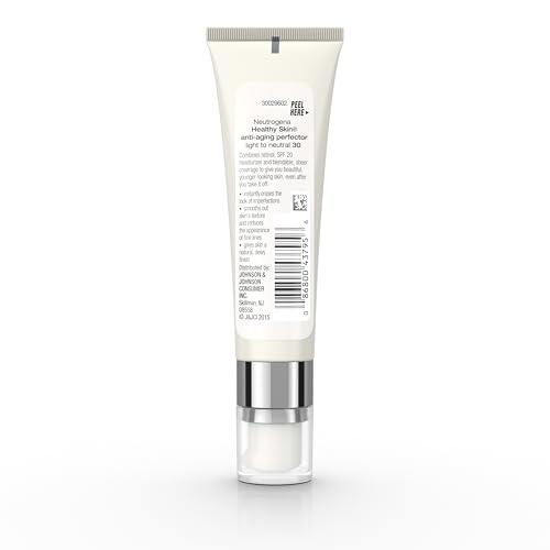 Neutrogena - مرطب وجه ملون صحي مضاد للشيخوخة معالج بالريتينول وواقي شمس واسع الطيف بمعامل حماية من الشمس 20، يحتوي على ثاني أكسيد التيتانيوم من نيوتروجينا، درجة اللون 30 (فاتح إلى حيادي)، 30 مل