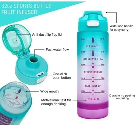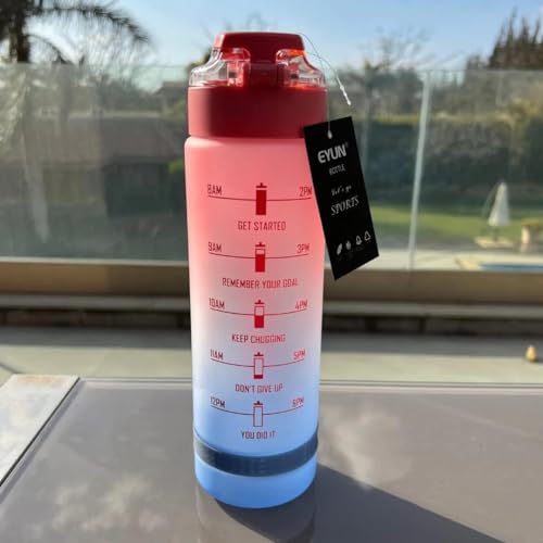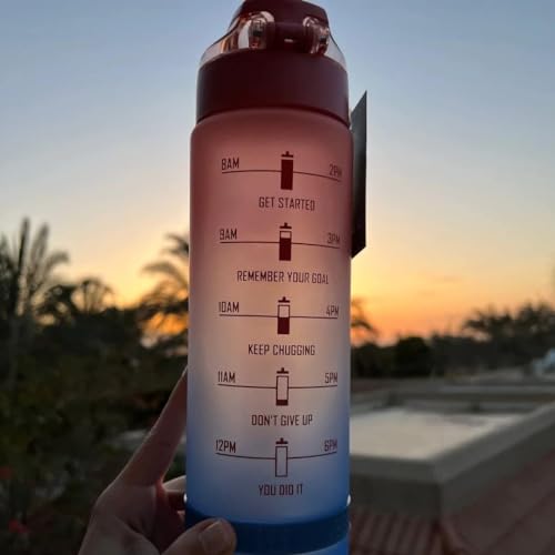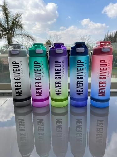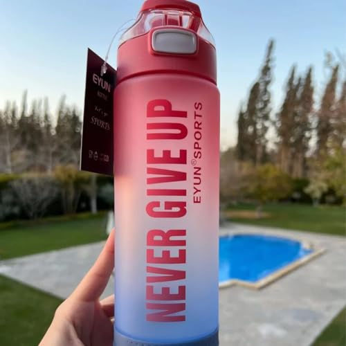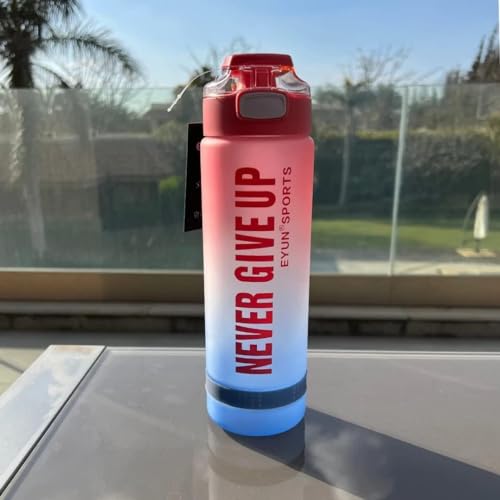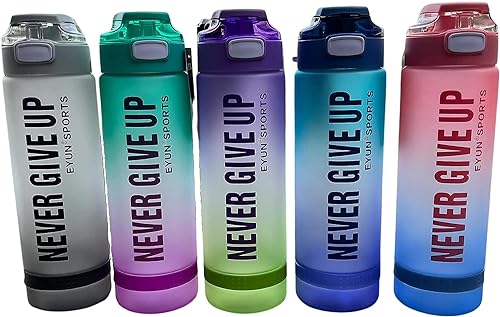 Generic - NEVER GIVE UP Water Bottle with Motivational Time Marker, Fast Flow BPA Free Non-Toxic for Fitness, Gym and Outdoor Sports - Multi Color