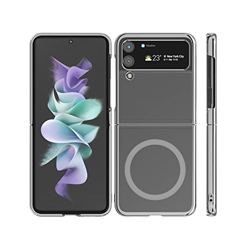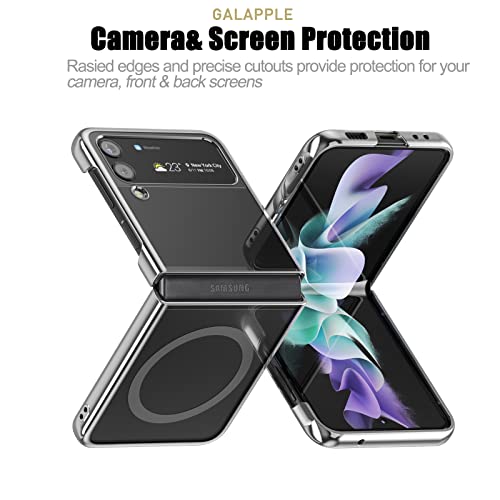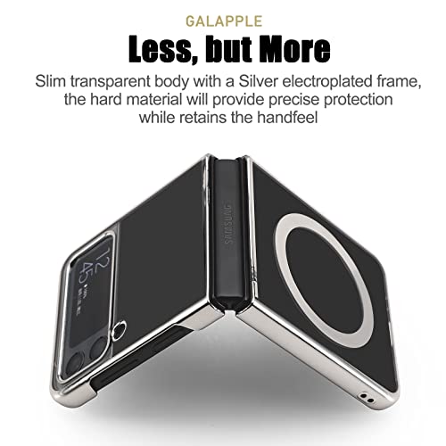 GALAPPLE - جراب مغناطيسي رفيع وشفاف لا يصفر ابدا متوافق مع جالاكسي زد فليب 4 2022 بمصدات صلبة مطلية فضي اكسسوارات ماج سيف ومقاوم للصدمات لحماية الشاشة وكاميرا 5G البولي كربونات