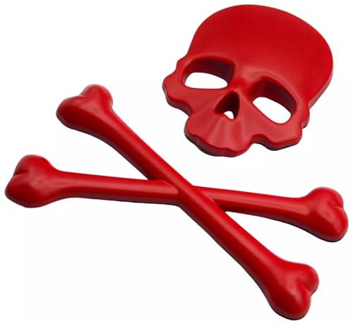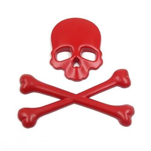 Generic - ملصق بادج جديد ثلاثي الابعاد معدني علي شكل هيكل عظمي وعظمتين متقاطعتين، علامة جمجمة لتزيين السيارة والدراجة النارية - لون احمر - كابرمصر 2020
