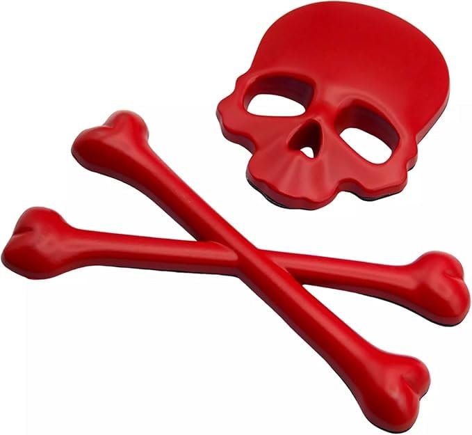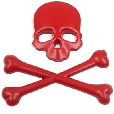 Generic - ملصق جديد ثلاثي الابعاد معدني علي شكل هيكل عظمي وعظمتين متقاطعتين، علامة جمجمة لتزيين السيارة والدراجة النارية - لون احمر