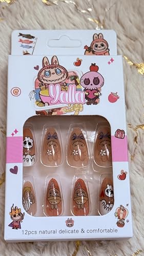 Generic - أظافر صناعية فنية عصرية للأطفال - 12 نمط مختلف - لمسة نهائية لامعة - أظافر تثبت بالضغط، (لون 1)