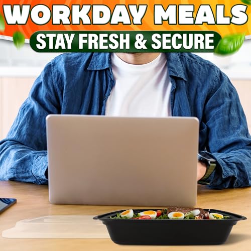 Evrblock - New Century, 50-Pack [32 oz] 1-Compartment Food Container - Rectangular Meal Prep Bento with Lid - Portable Lunch Box - Stackable - BPA Free - Freezer/Microwave/Dishwasher Safe - Reusable Storage