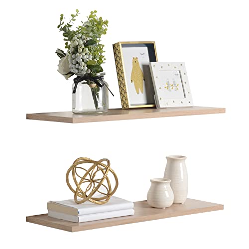 - ✅ ORGANIZATION MADE EASY: Whether you’re creating a photo display in the living room or you need extra storage in the kitchen, these natural wood floating shelves elegantly display your possessions and reduce clutter!