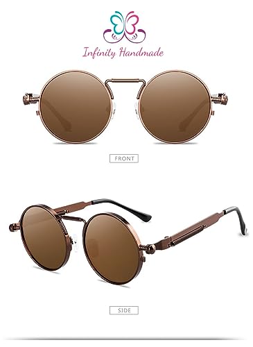 Generic - New Designer Fashion Punk Style Sunglasses Brown Men Retro Round Metal Frame Women Sun Glasses Fashion Eyewear UV protection 400 Seller's Exclusive InfinityHandmade