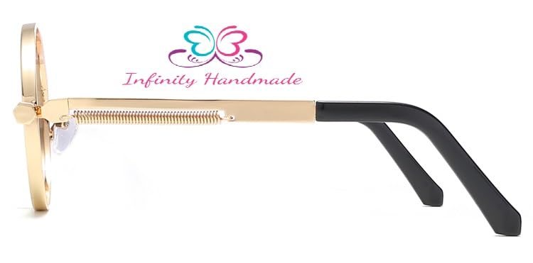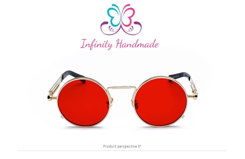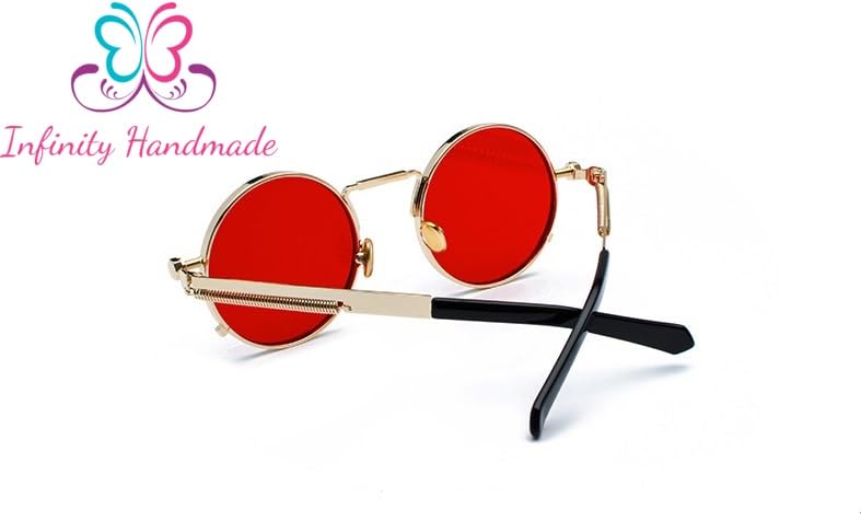 Generic - New Designer Fashion Punk Style Sunglasses Men Retro Round Metal Frame Women Sun Glasses Fashion Eyewear UV protection 400 Gold & Red Seller's Exclusive InfinityHandmade